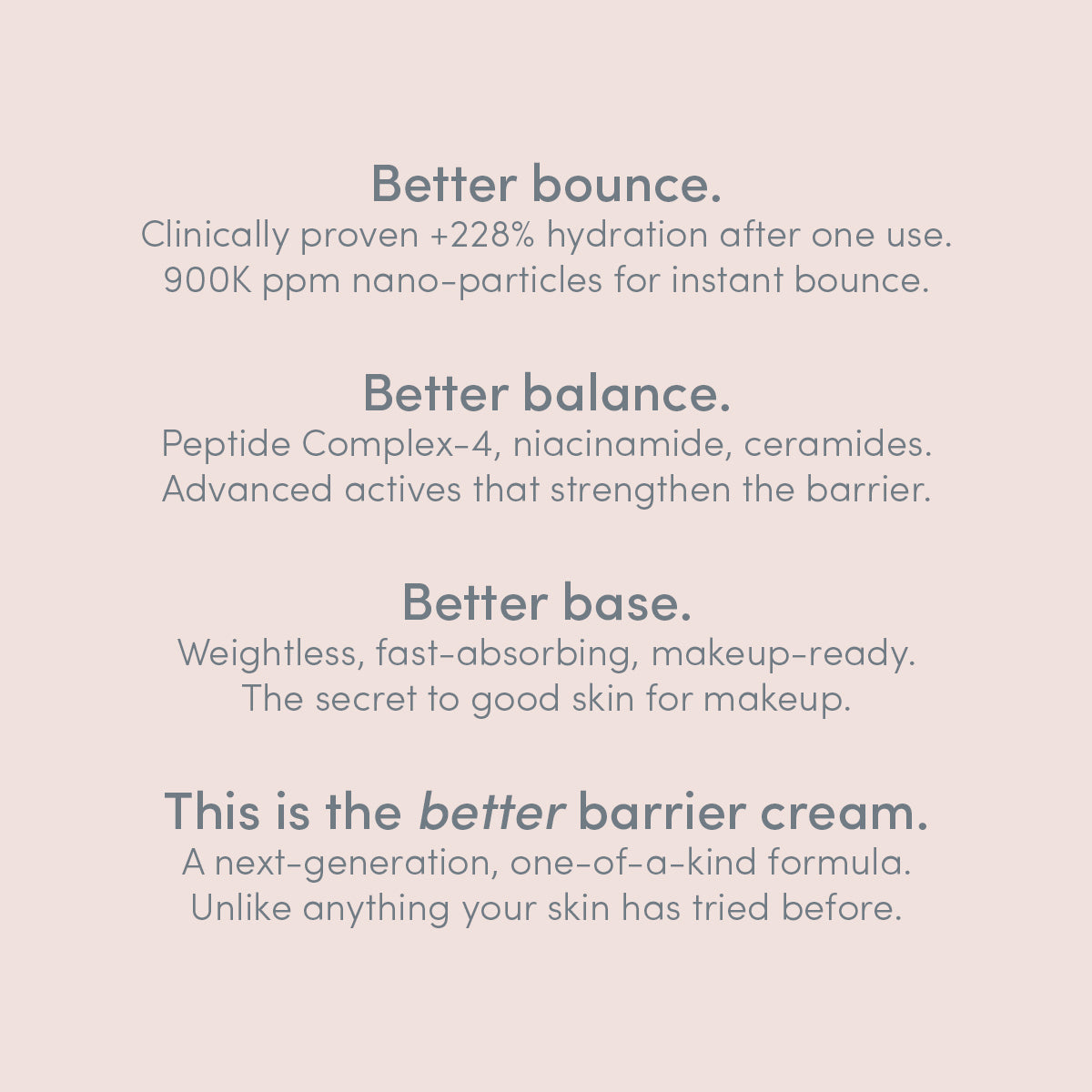 A clinically tested, next-generation barrier cream that delivers +228% hydration after one use, powered by 900K ppm nano-particles for instant skin bounce — formulated to wear beautifully under makeup.